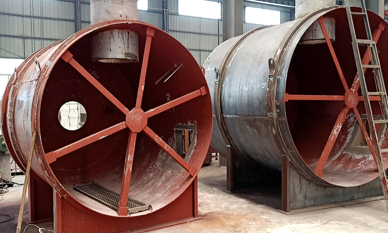 罩式爐加熱罩為圓筒狀結構,內襯耐火材料,火焰爐在加熱罩下部通常沿切線布置2排或3排燒嘴。由于全氫強對流罩式爐的生產周期為42h,加熱時間約22h,加熱罩為周期性工作,頻繁經受